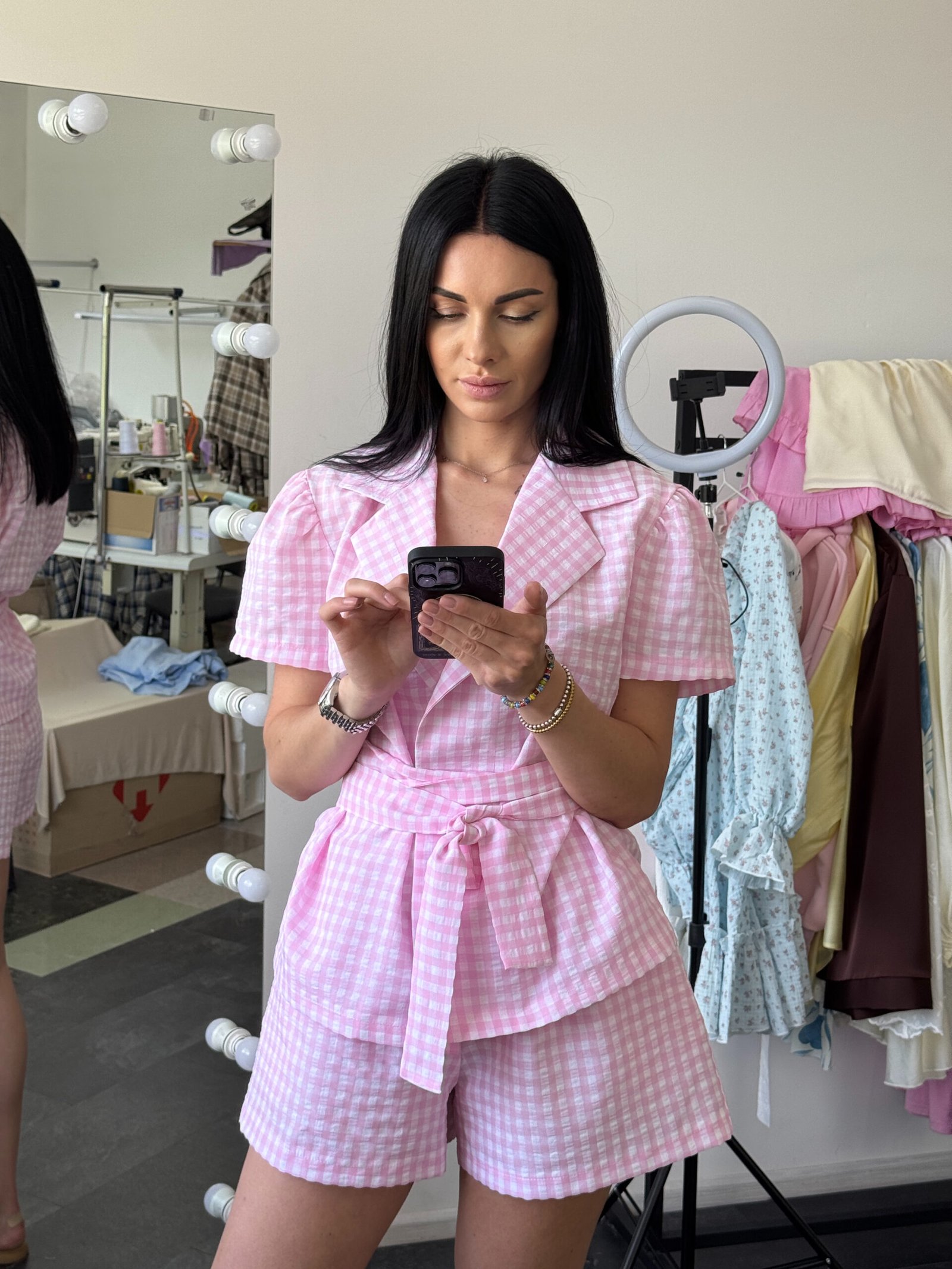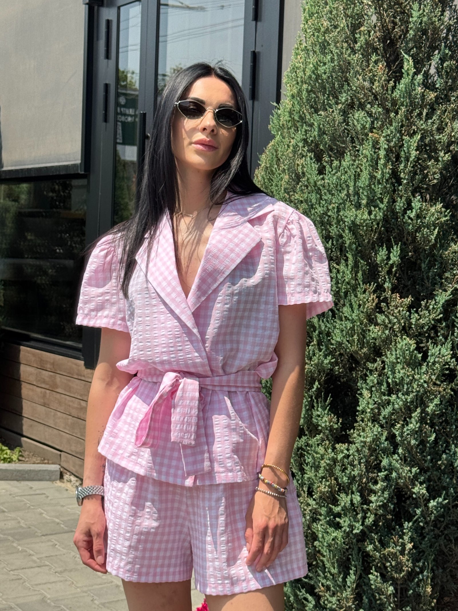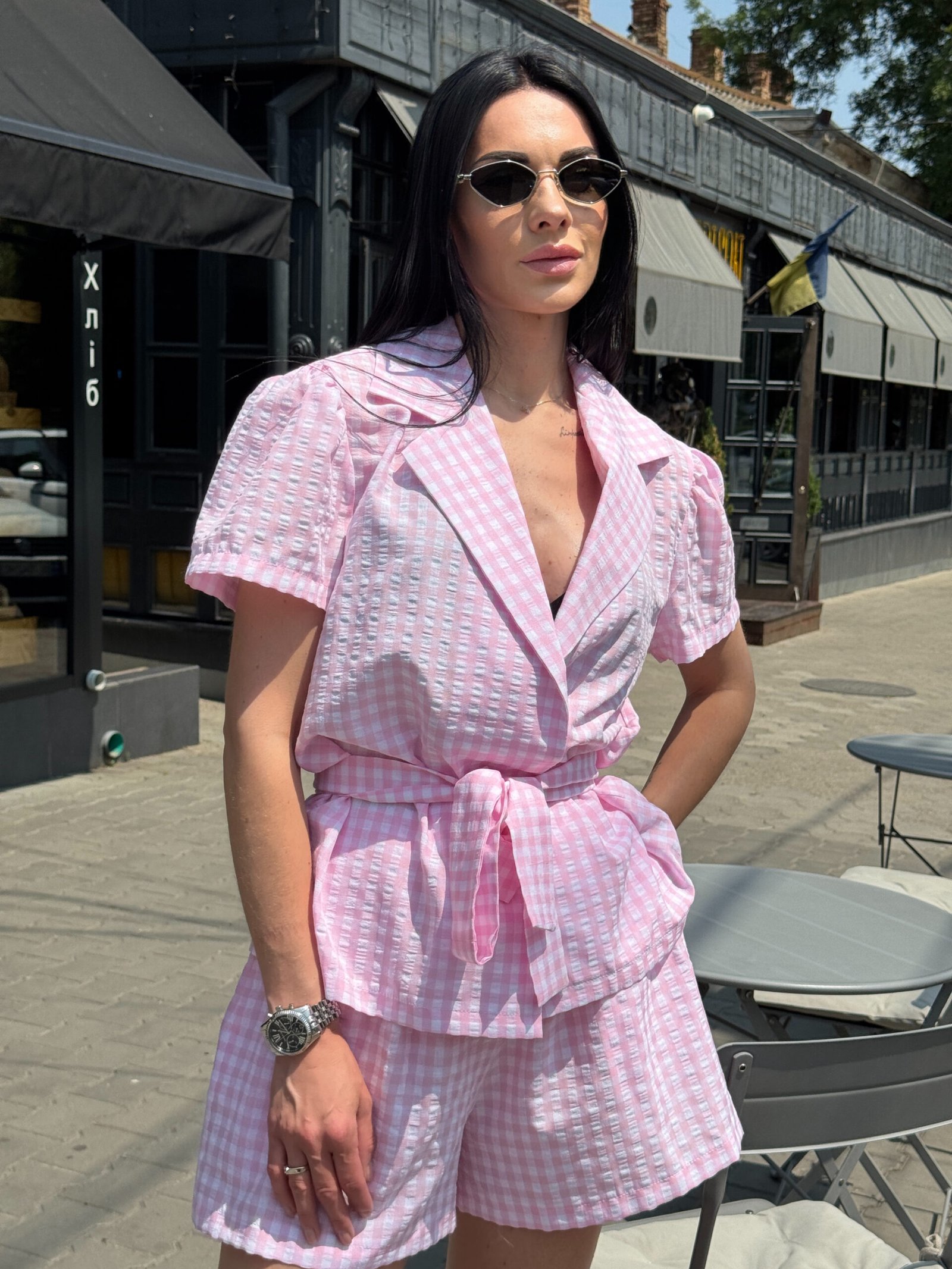Костюм у клітинку — це стильне рішення для яскравого та впевненого образу. Поєднання класичного візерунку з трендовими відтінками створює баланс між стриманістю та грайливістю. Завдяки рубашечному котону костюм зручний у носінні та приємний на дотик, а вільний крій робить його універсальним для різних випадків.