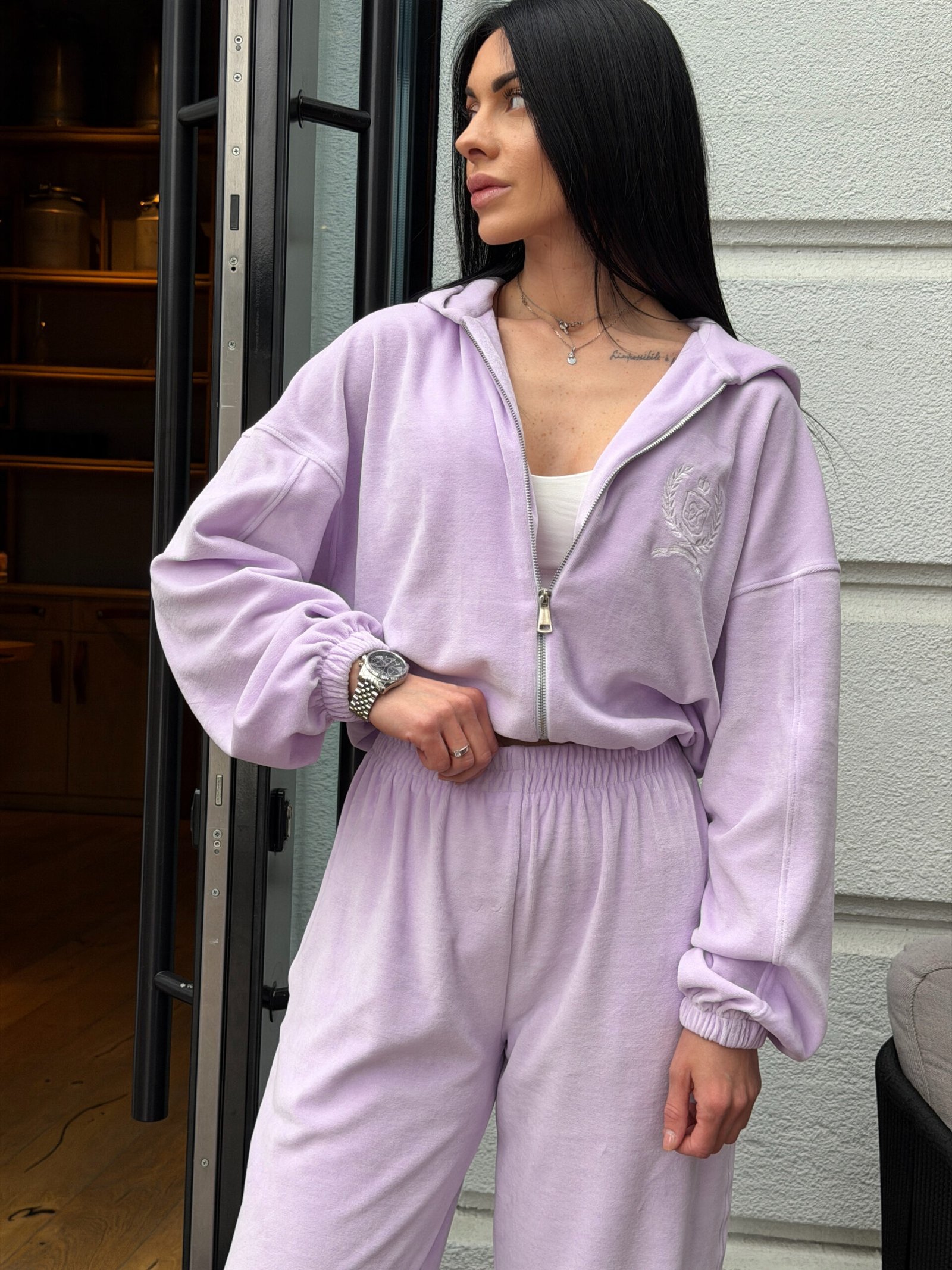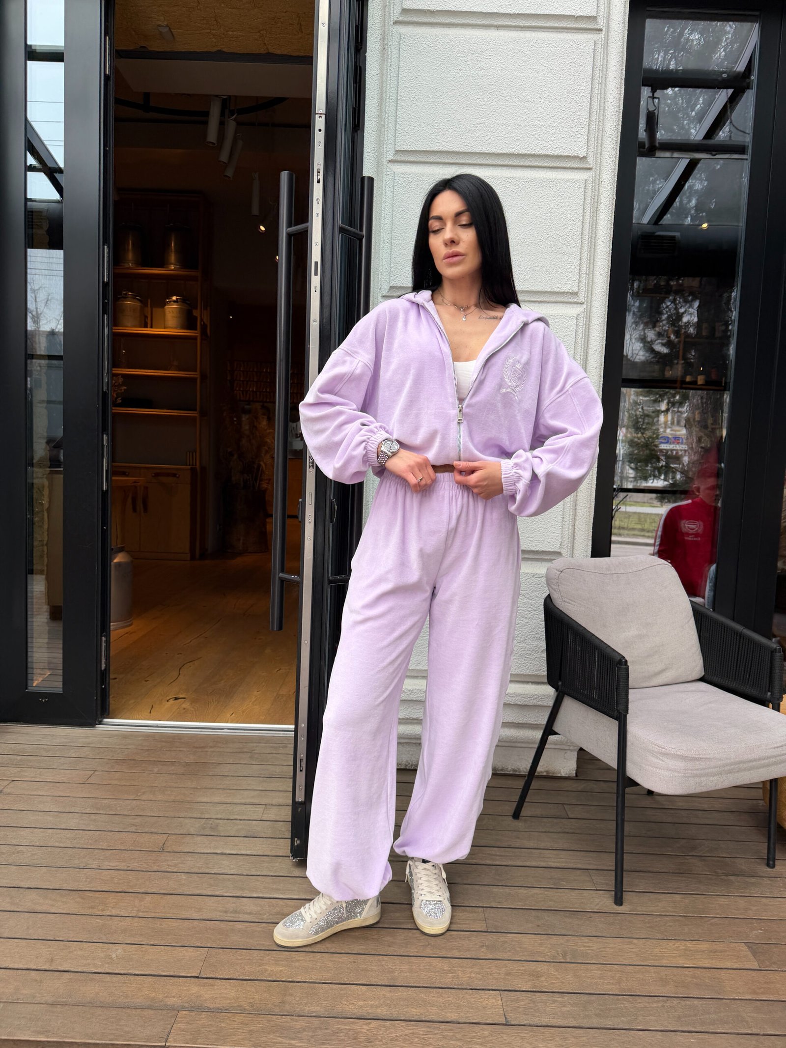 Велюровий костюм з вишивкою ідеально підкреслює стиль та комфорт, створюючи затишний образ для прогулянок або відпочинку. М’який велюр забезпечує приємні відчуття на шкірі та додає виробу вишуканості. Підійде для щоденного носіння та особливих моментів.