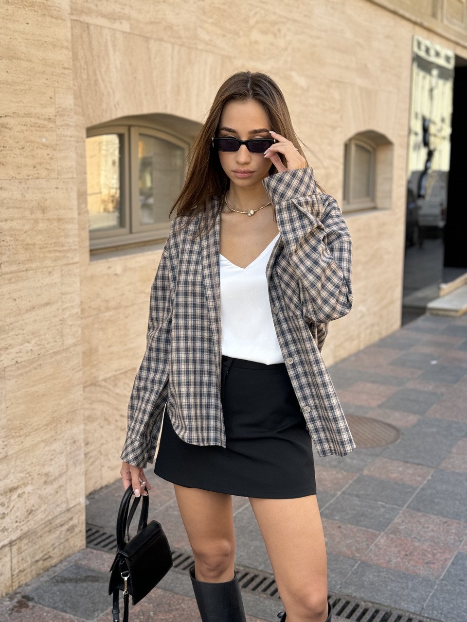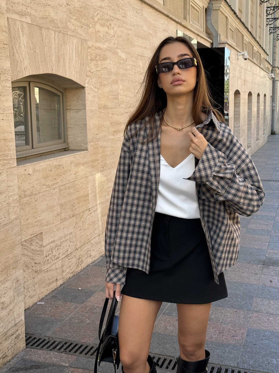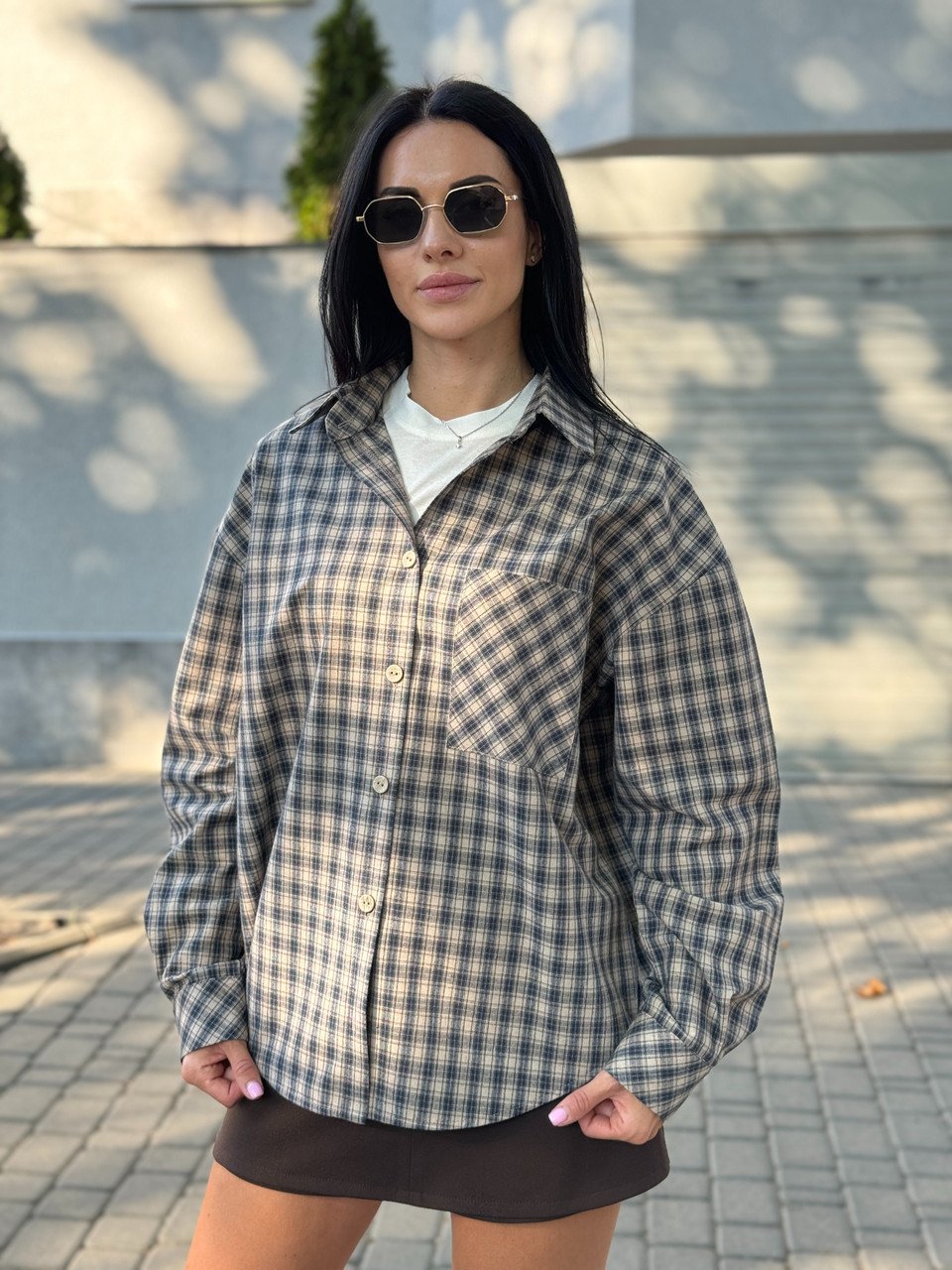 Модна повсякденна сорочка в карту на ґудзиках, жіноча картата сорочка oversize з кишенею