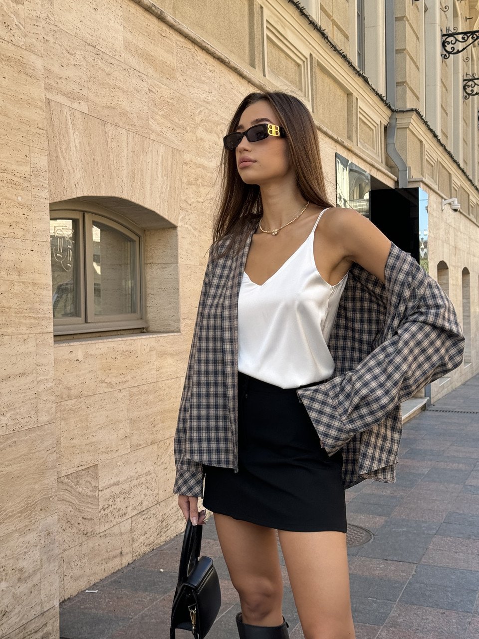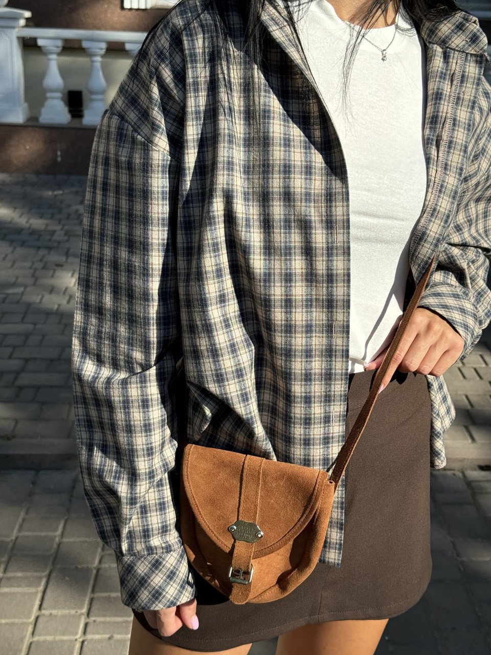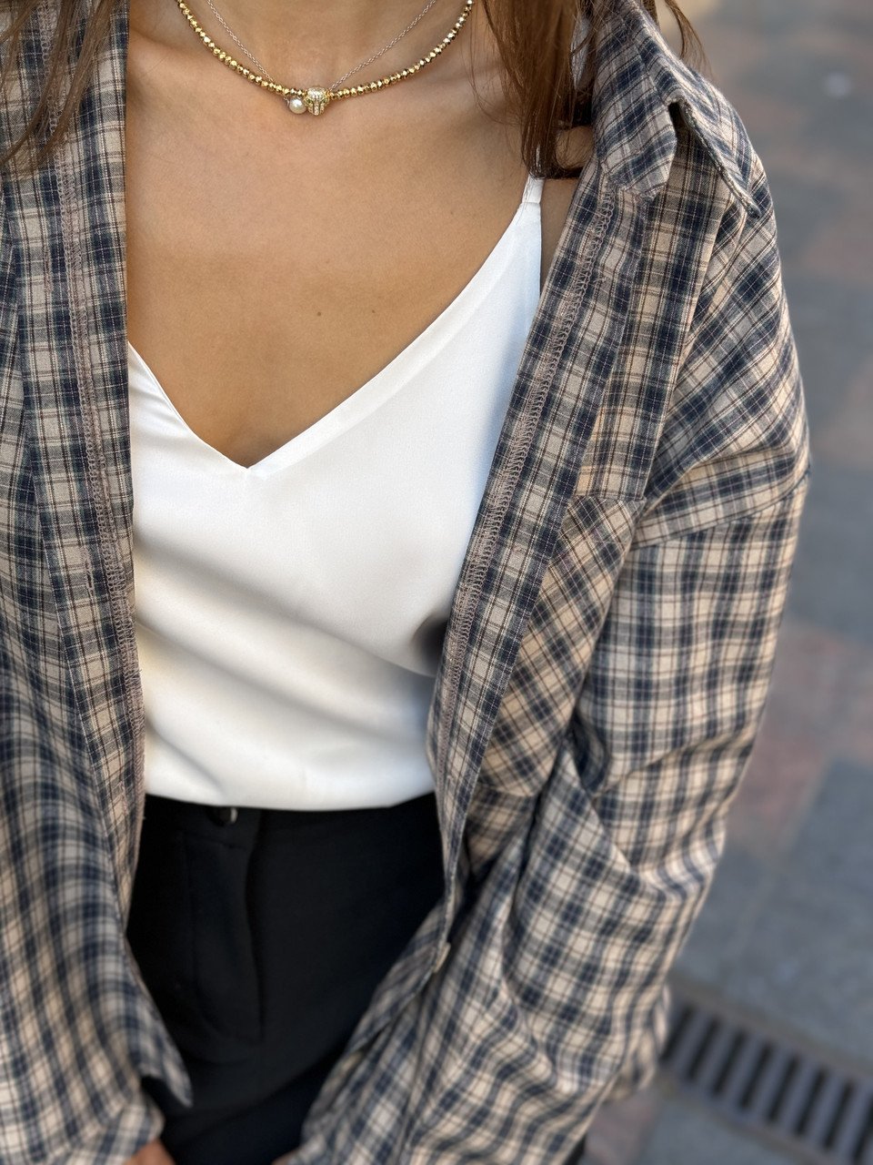 Модна повсякденна сорочка в карту на ґудзиках, жіноча картата сорочка oversize з кишенею