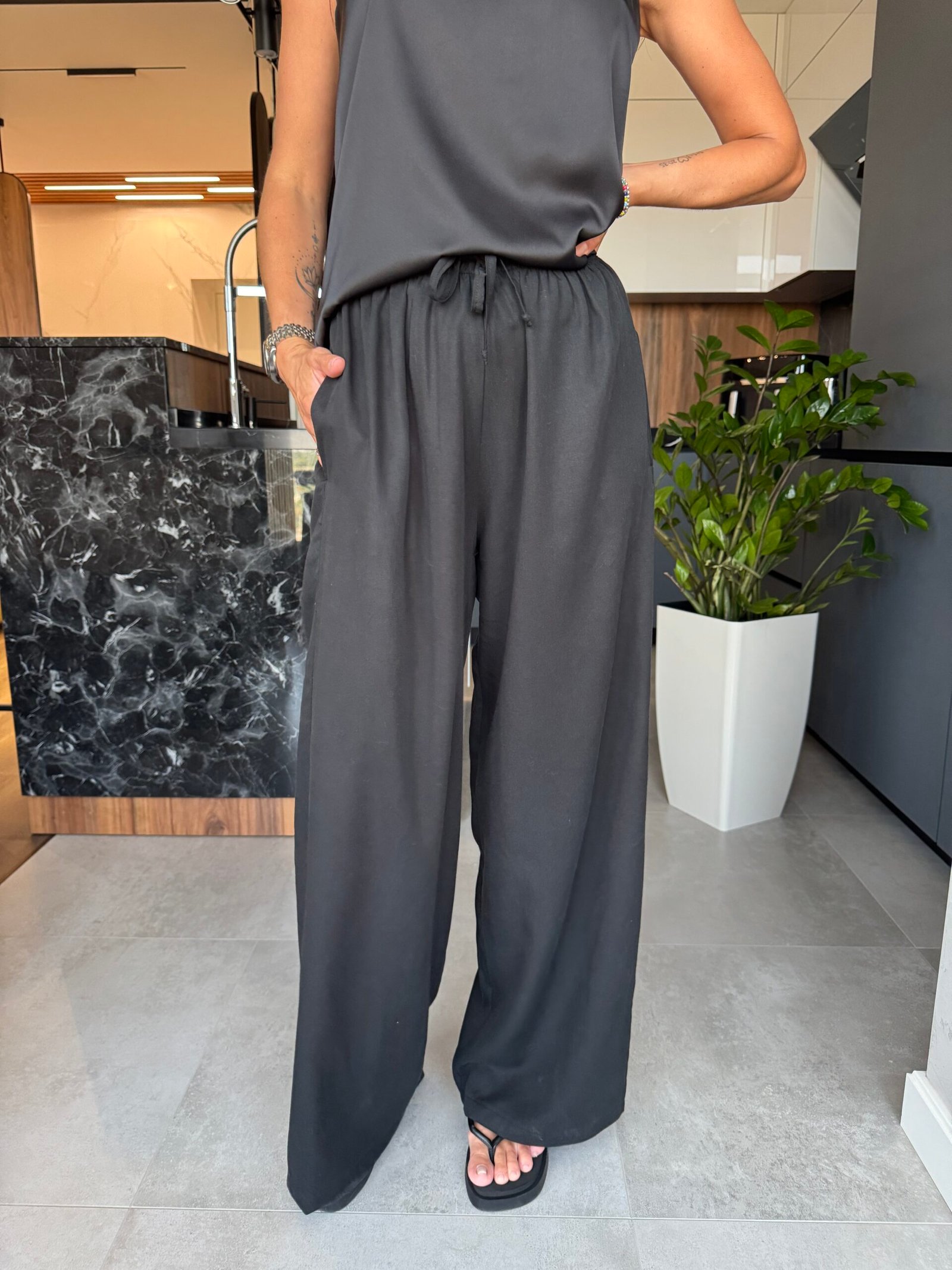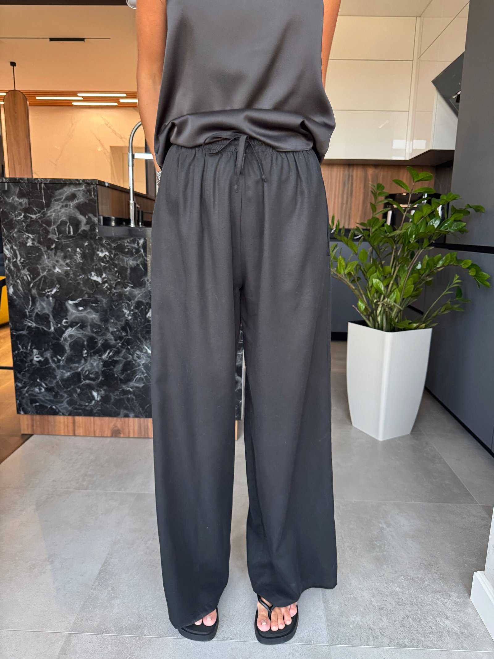 Штани з тенселу — це поєднання природної легкості, елегантного вигляду та щоденного комфорту. Тканина має шовковисту текстуру, приємну до тіла, та добре дихає, що робить штани ідеальними для теплої пори року. Вони легко поєднуються з базовими топами, сорочками або жакетами.