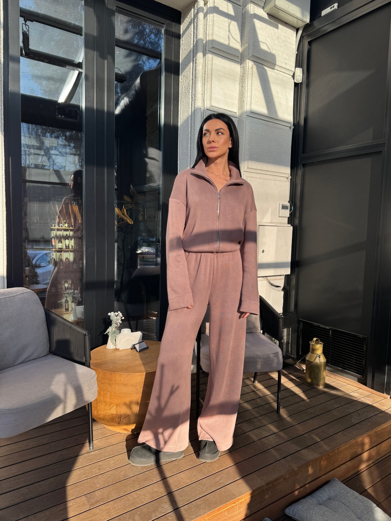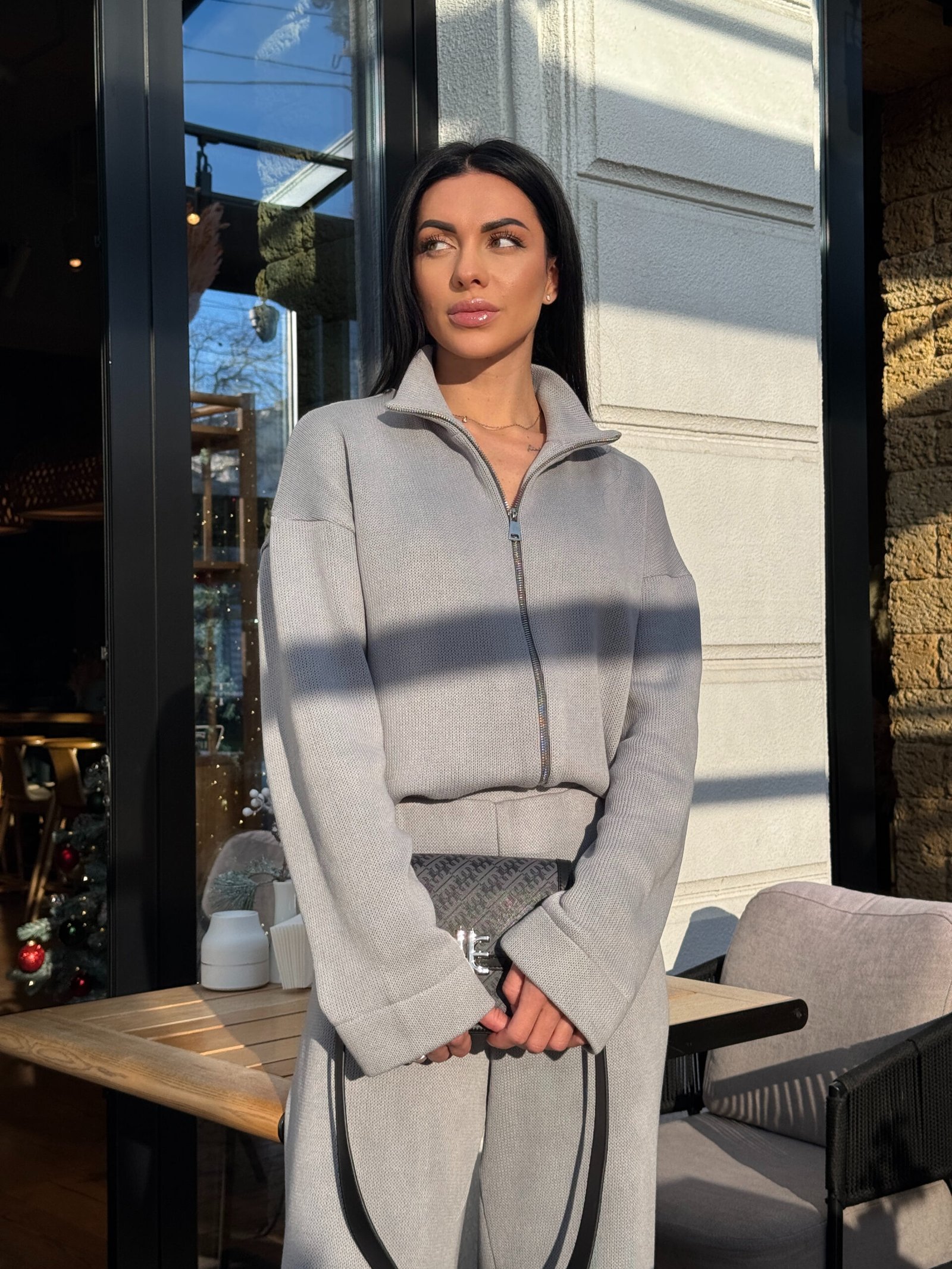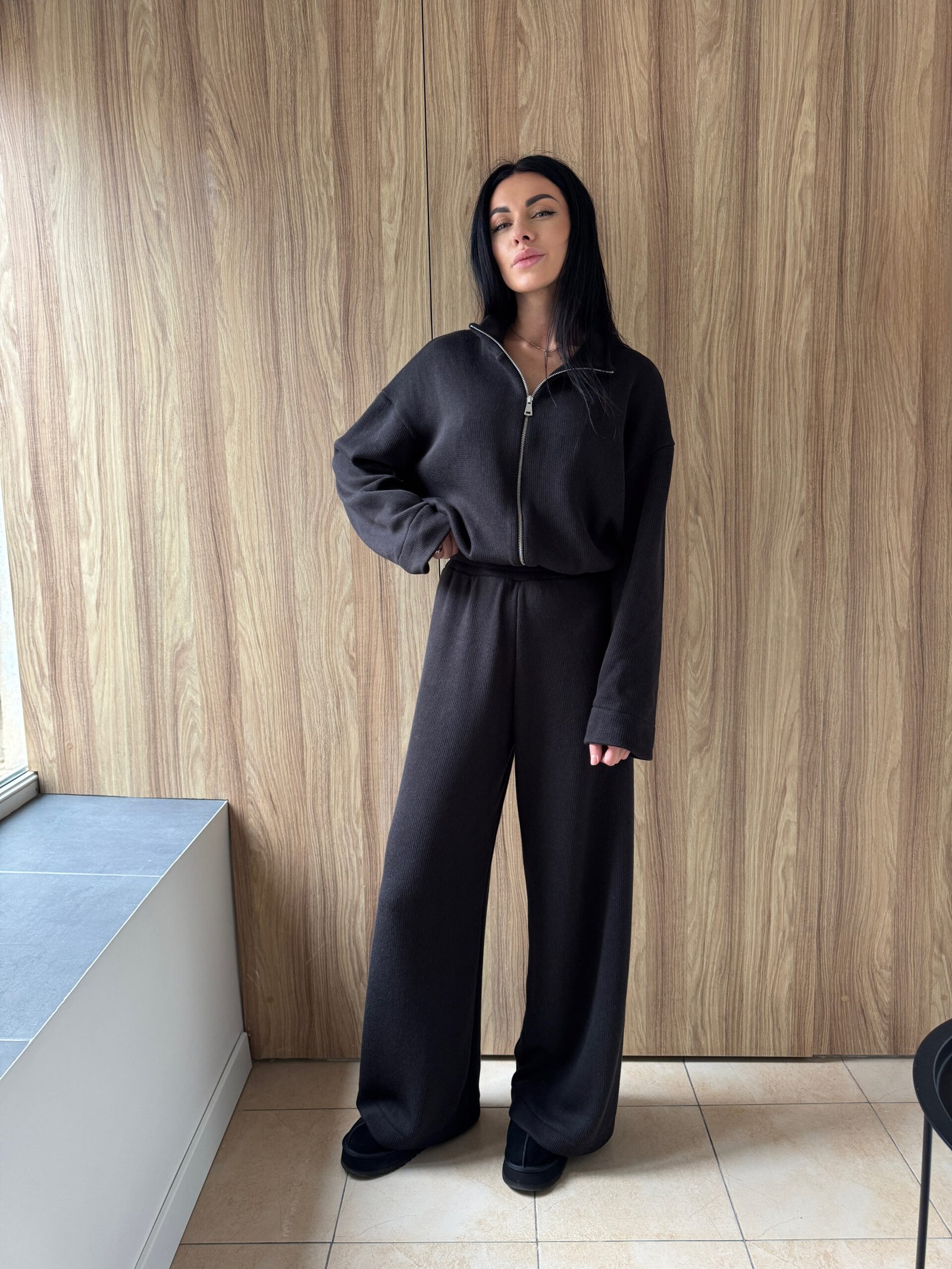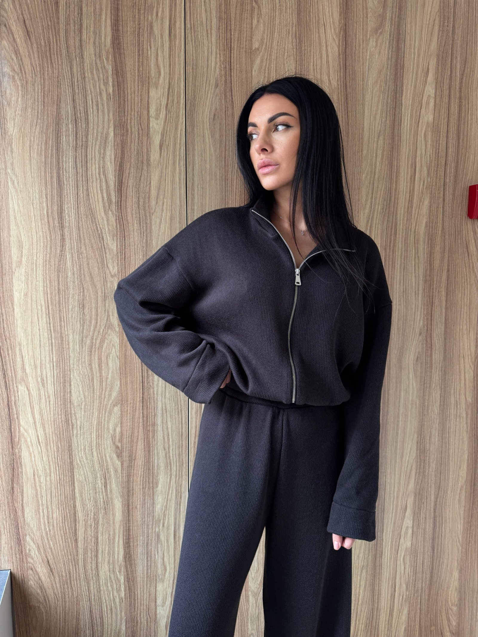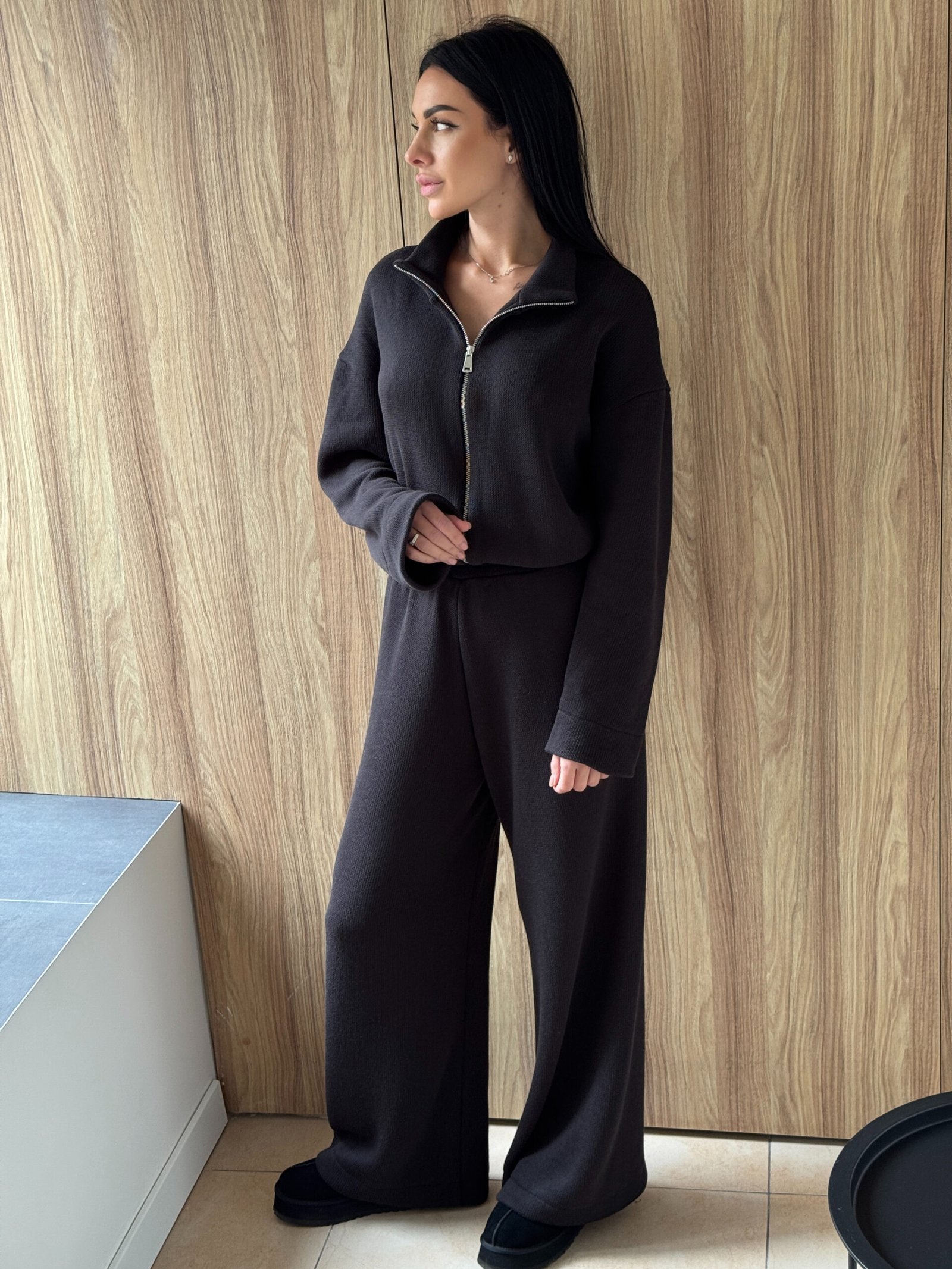 В’язаний костюм із кофтою на блискавці та штанами вільного крою – KAKAO brand