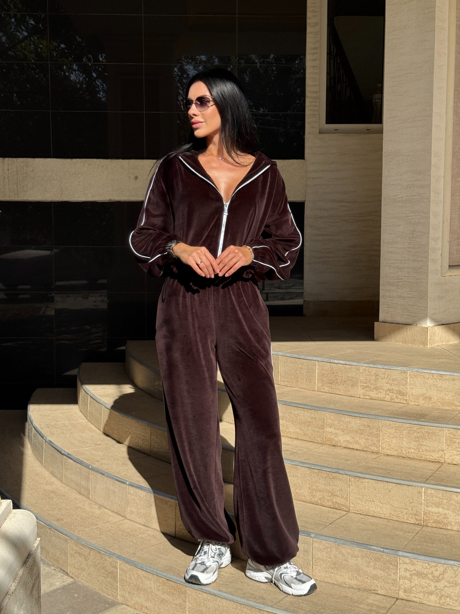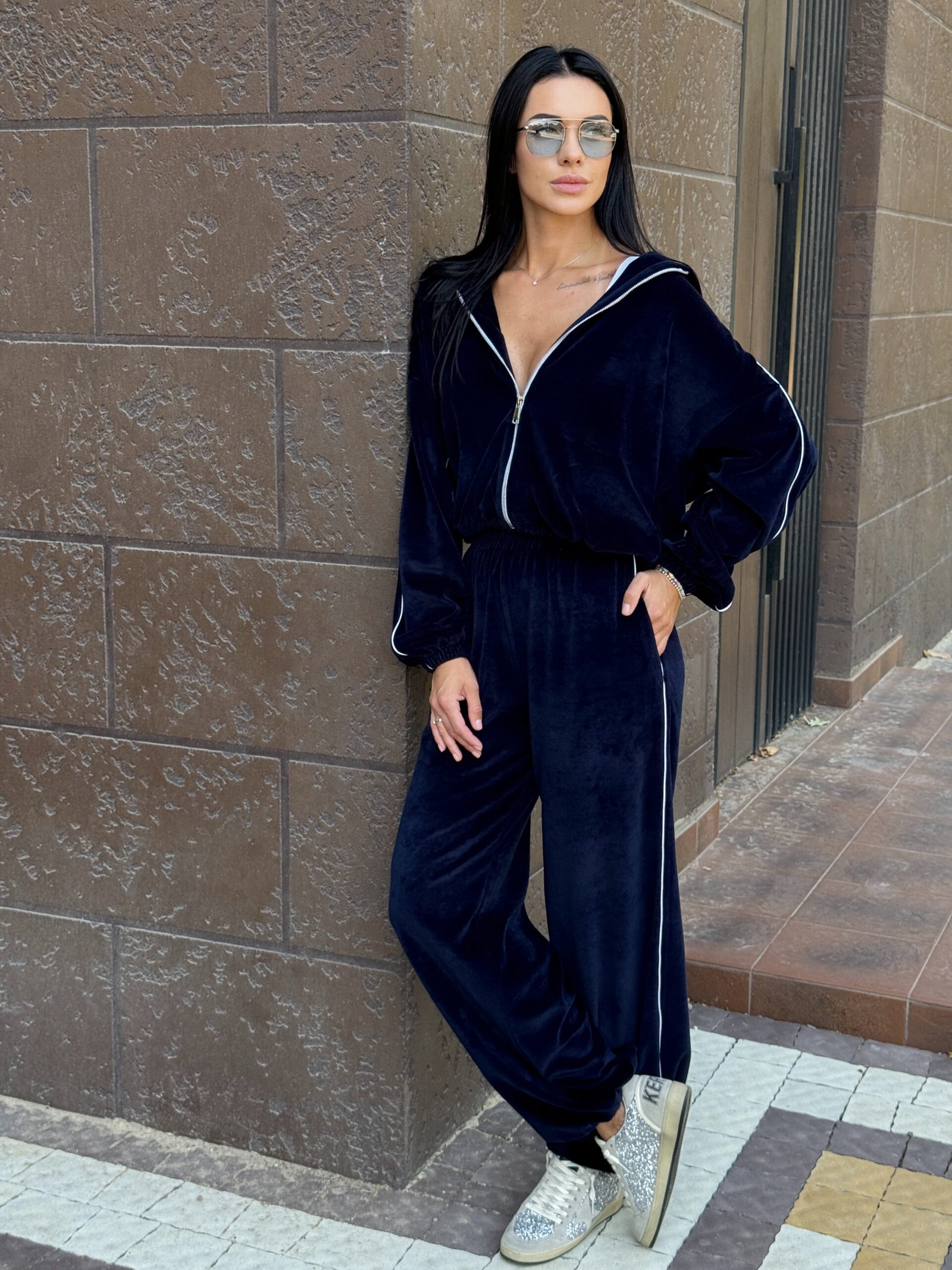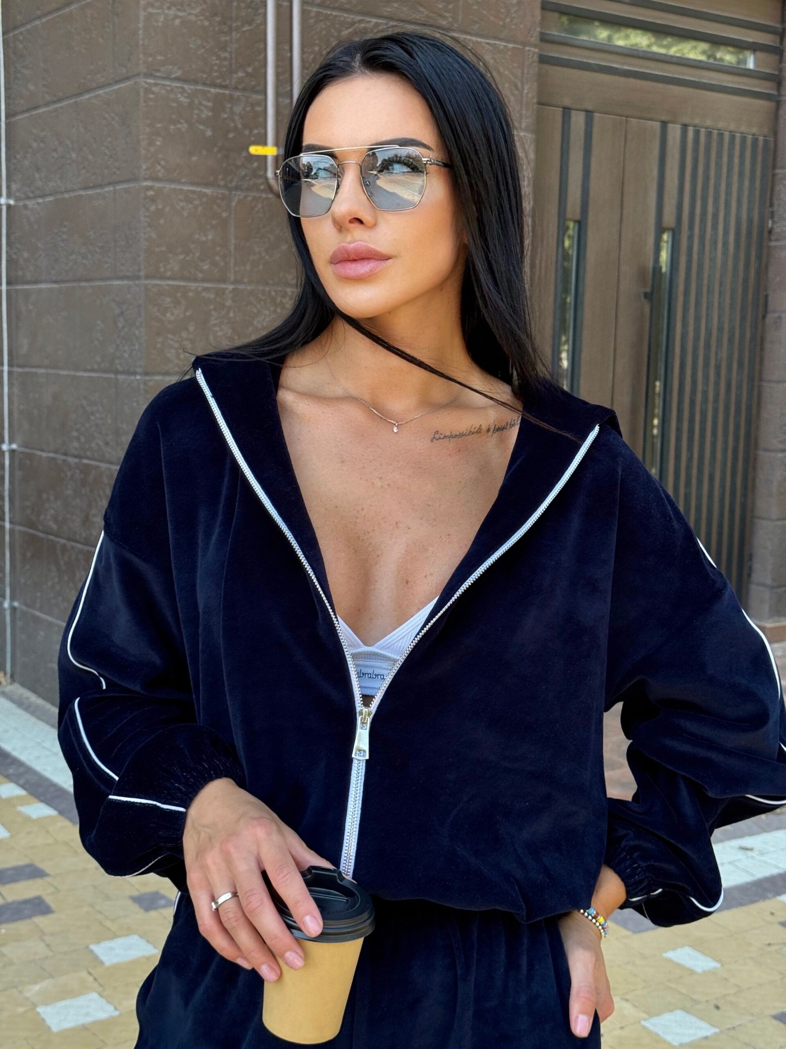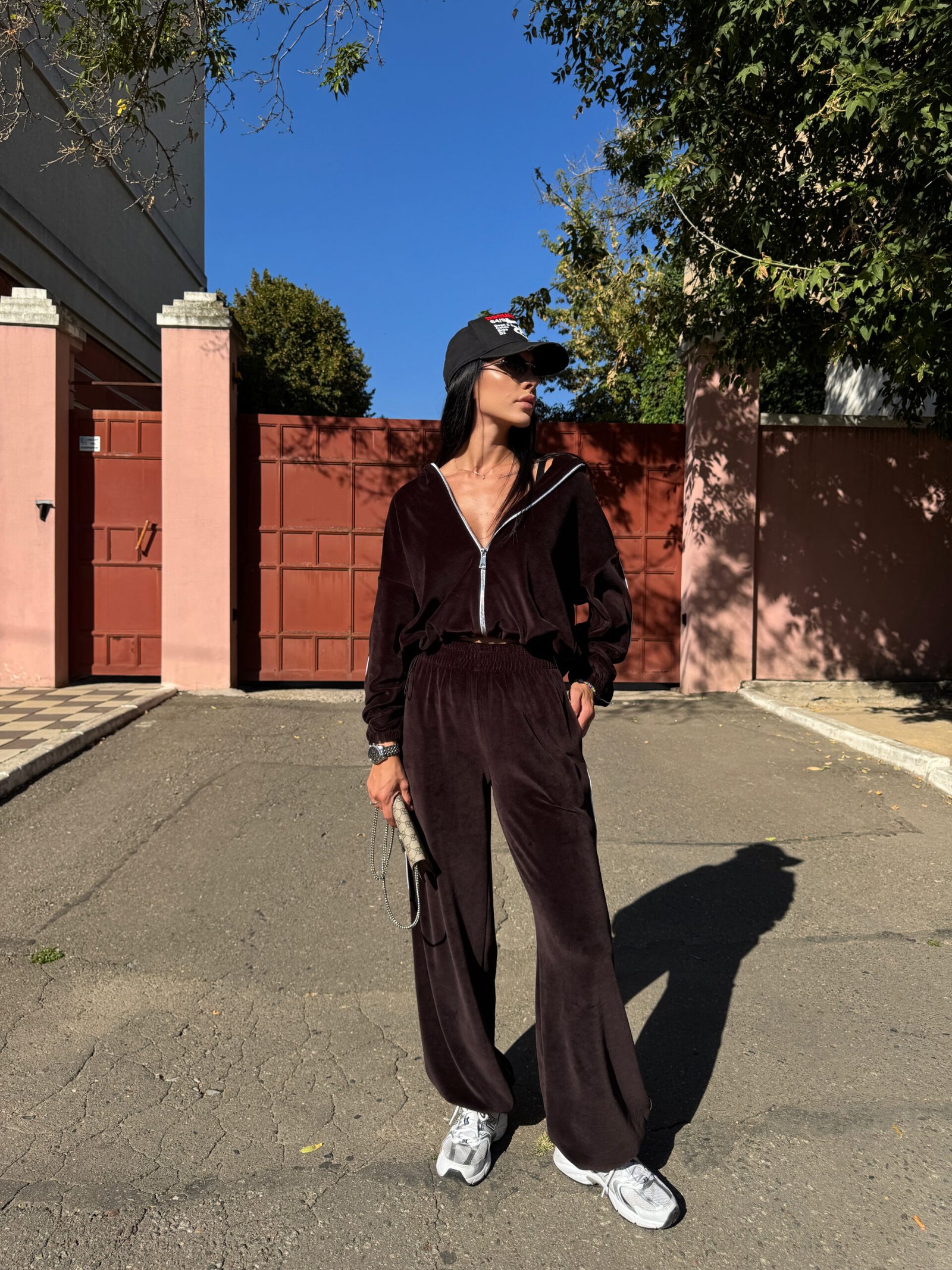 Велюровий костюм стане ідеальним вибором для комфортного відпочинку вдома або активного дня на прогулянці. Його стильний вигляд підкреслить вашу індивідуальність, а м’який матеріал подарує відчуття затишку. Виріб легко комбінується з іншими елементами гардеробу для створення сучасного образу.