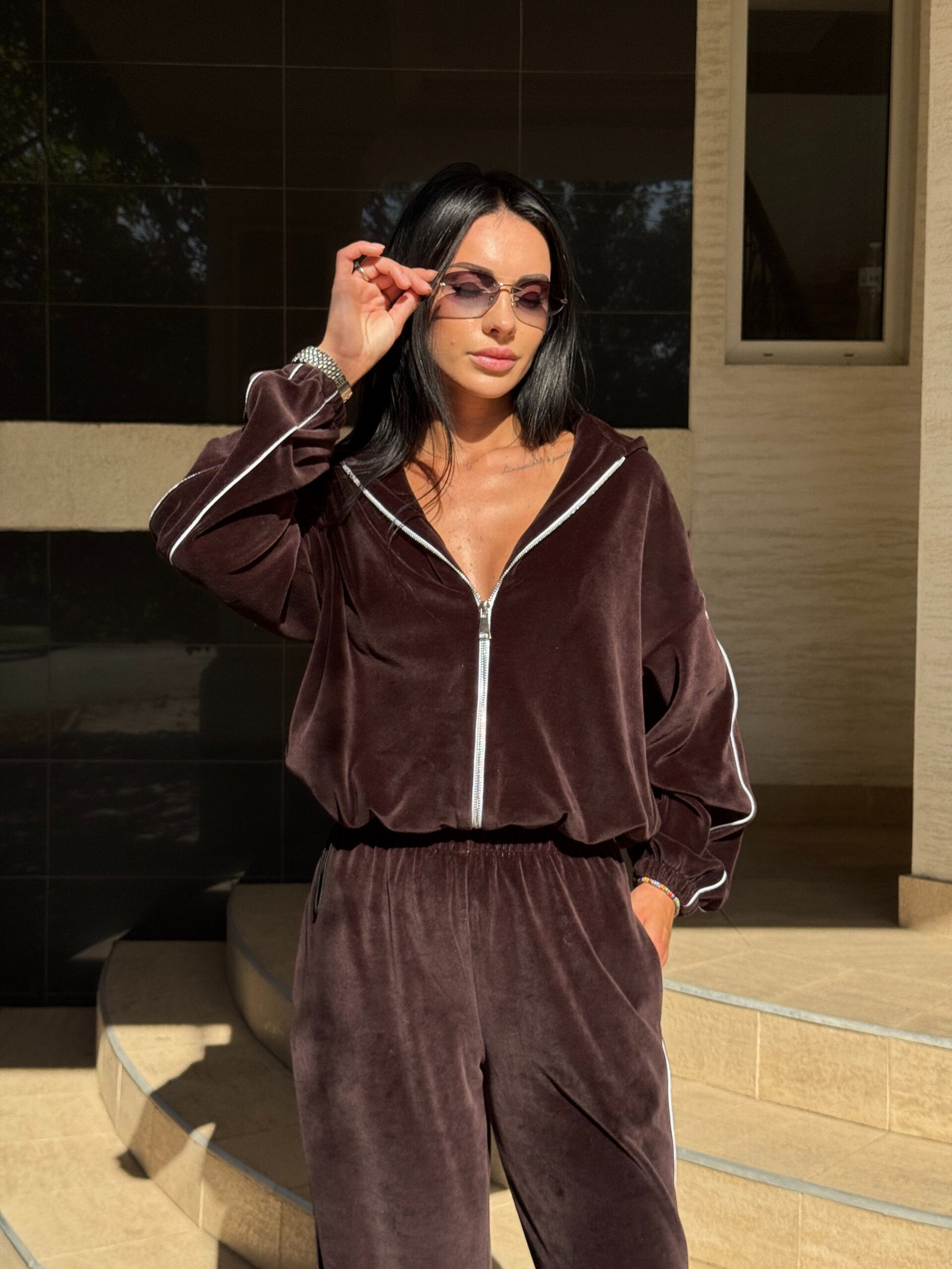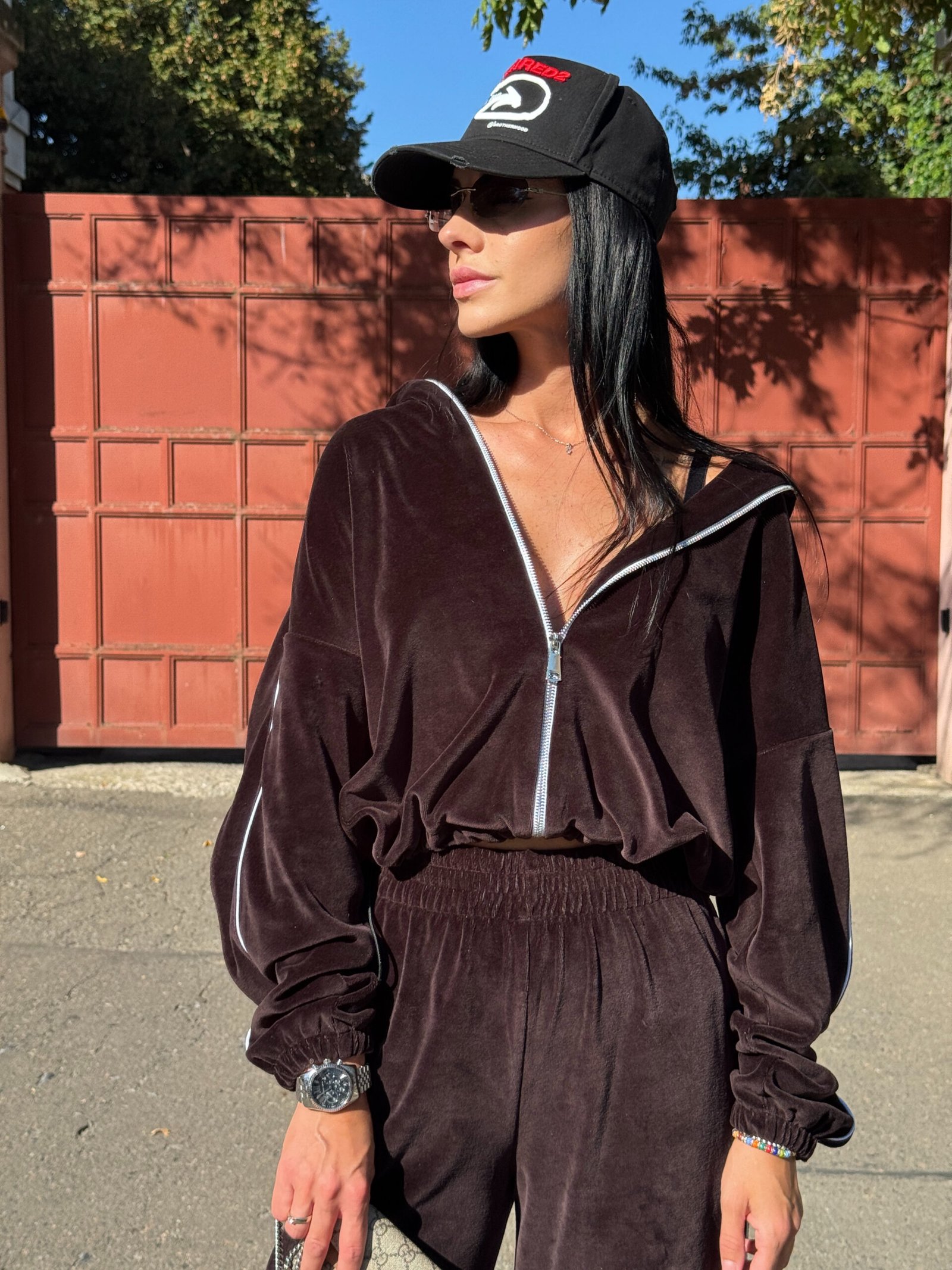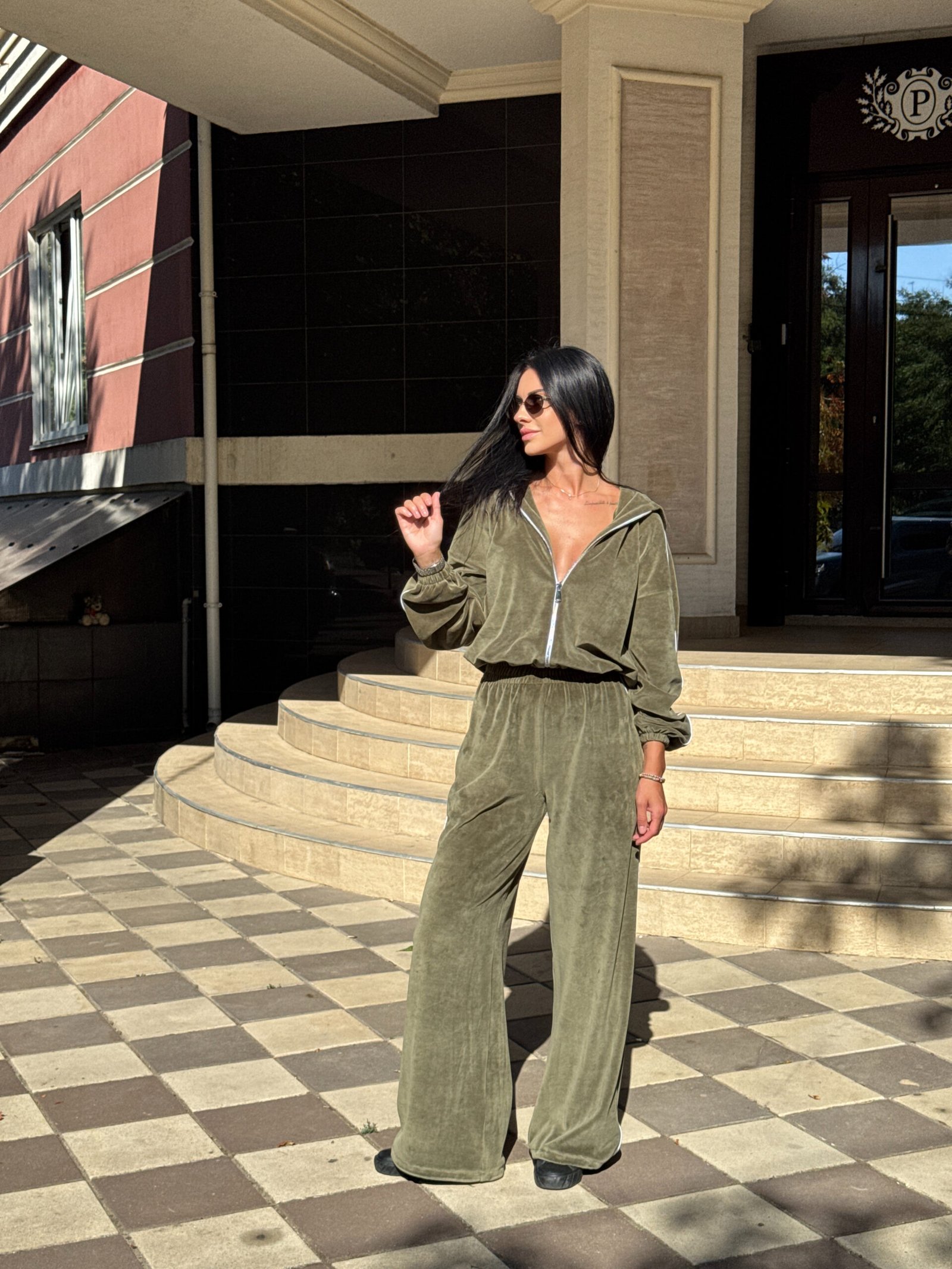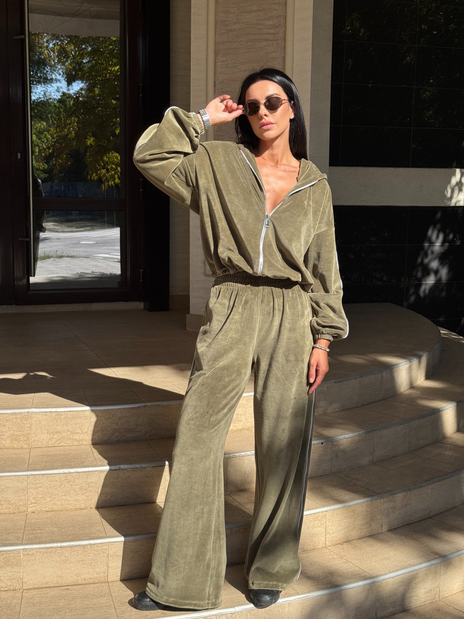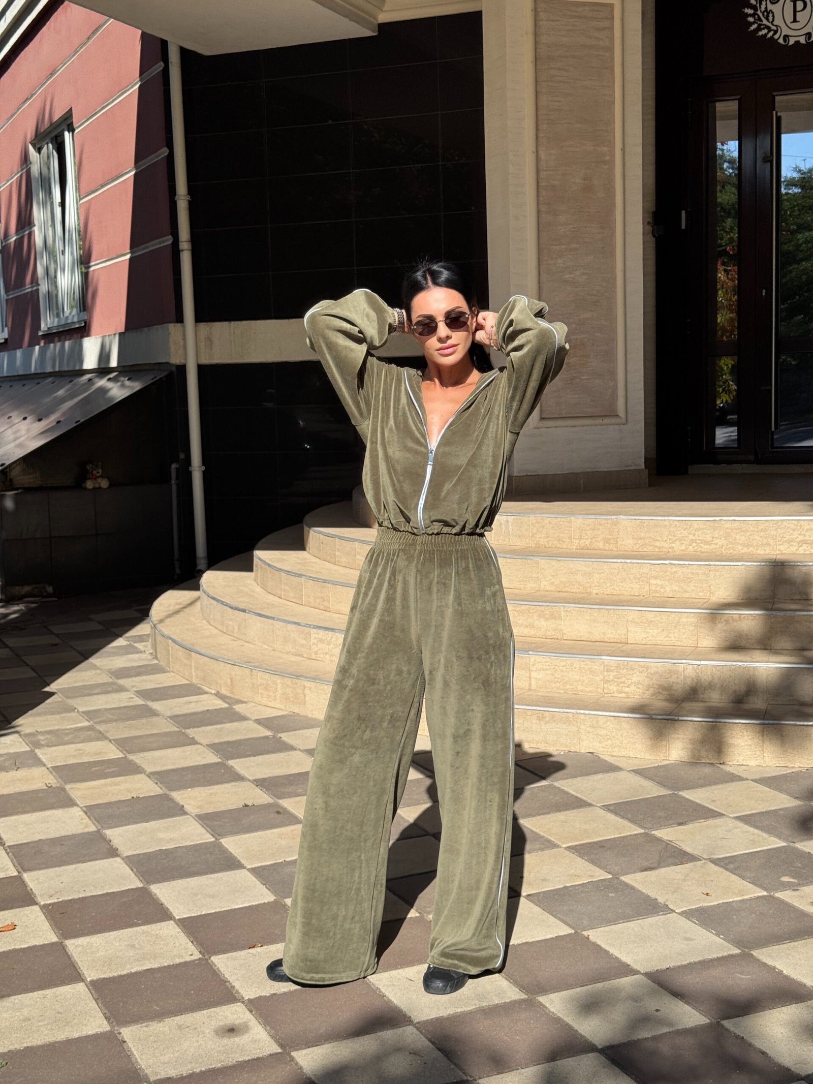 Велюровий костюм стане ідеальним вибором для комфортного відпочинку вдома або активного дня на прогулянці. Його стильний вигляд підкреслить вашу індивідуальність, а м’який матеріал подарує відчуття затишку. Виріб легко комбінується з іншими елементами гардеробу для створення сучасного образу.