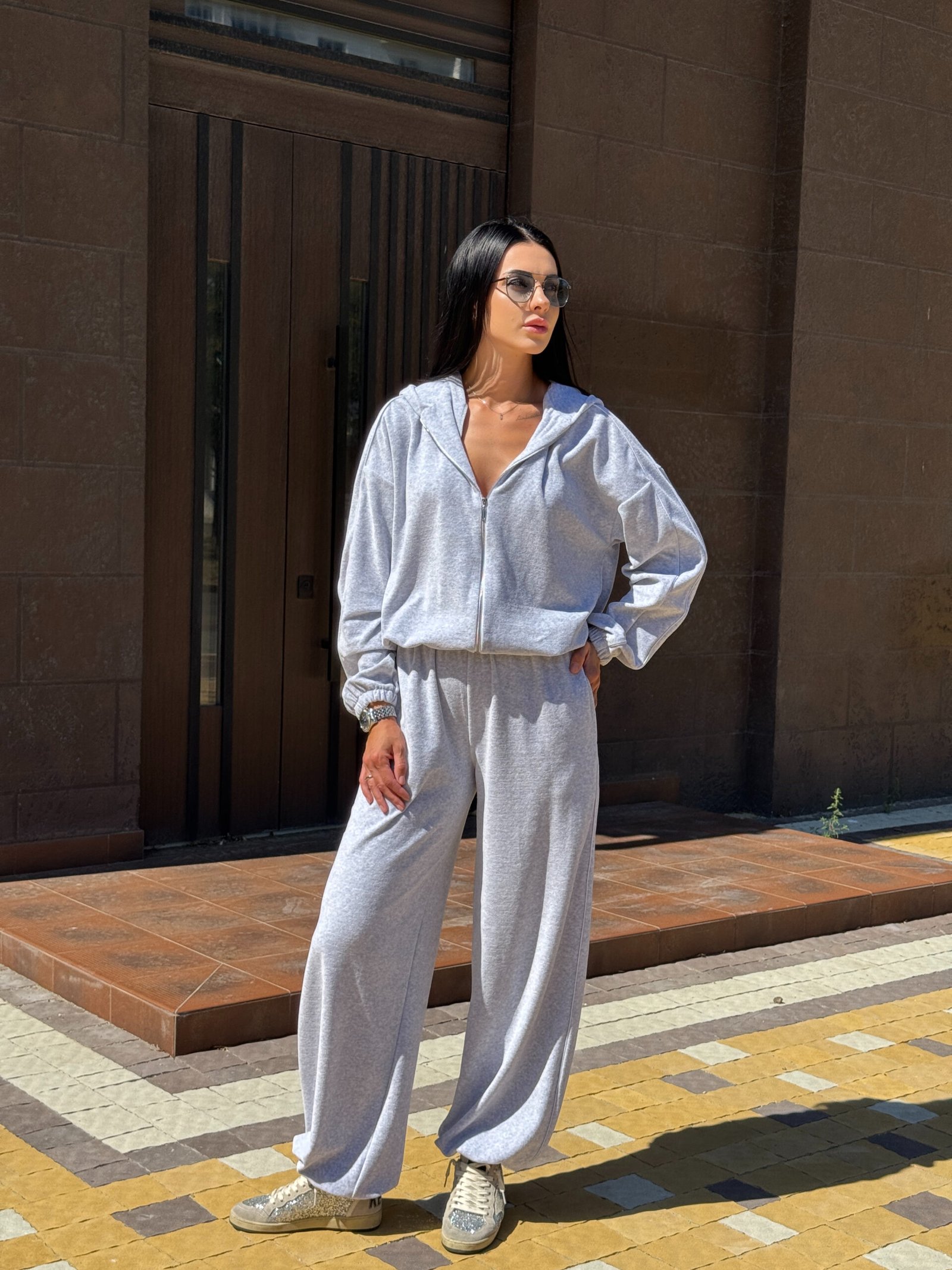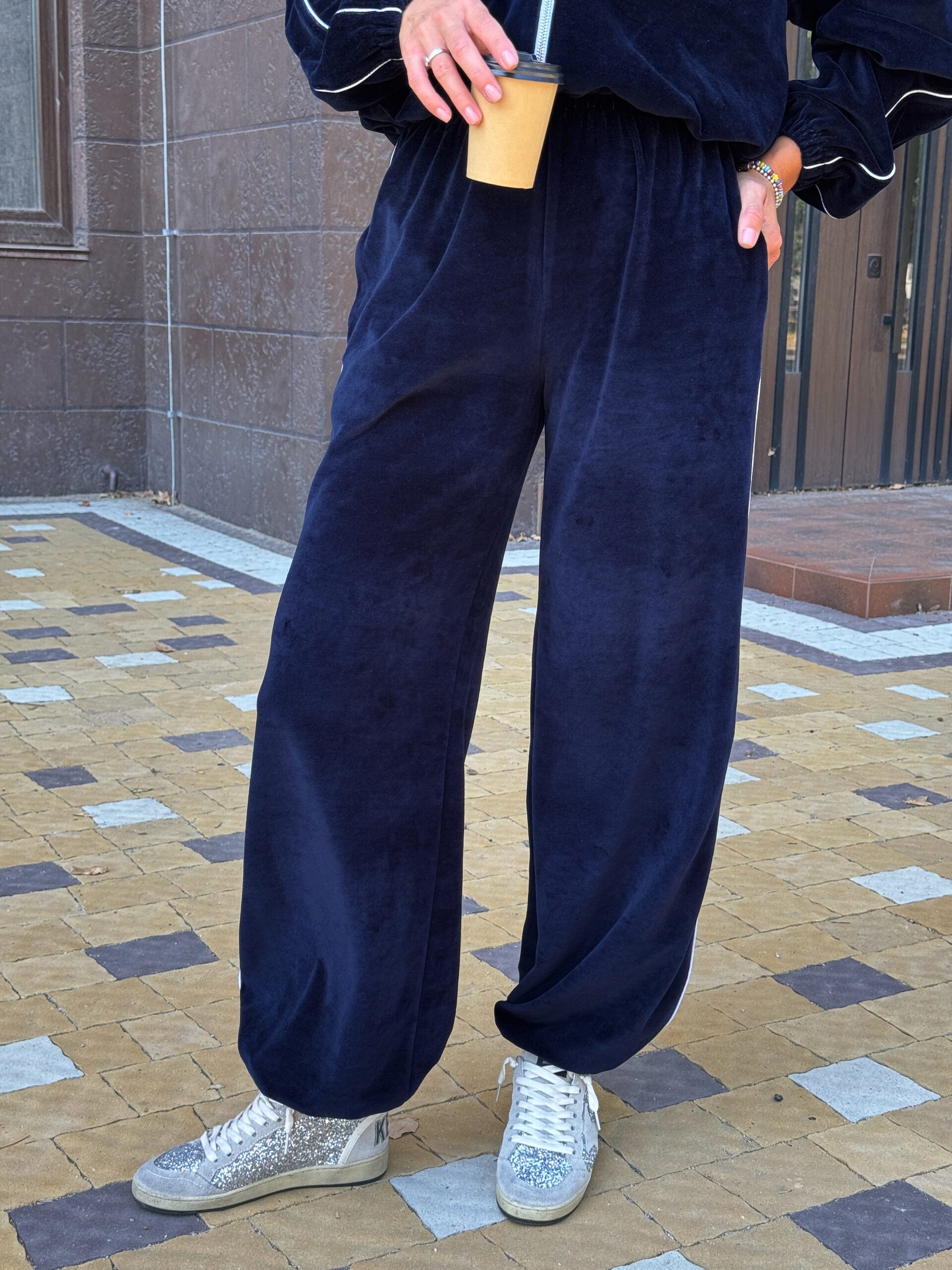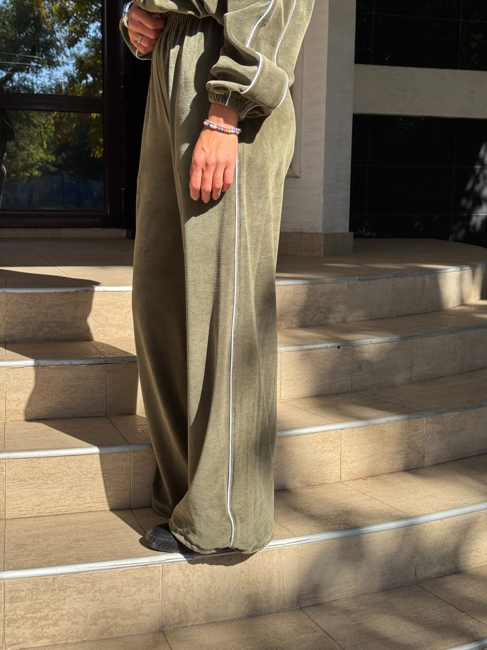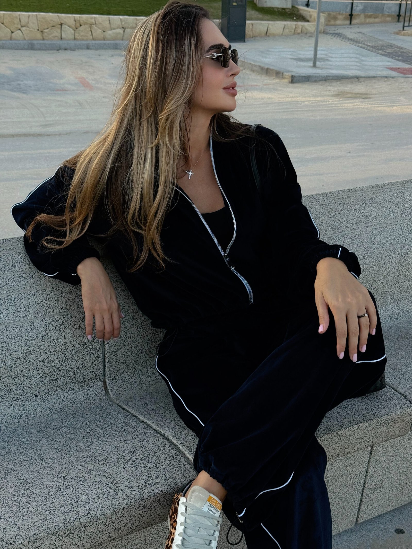 Велюровий костюм стане ідеальним вибором для комфортного відпочинку вдома або активного дня на прогулянці. Його стильний вигляд підкреслить вашу індивідуальність, а м’який матеріал подарує відчуття затишку. Виріб легко комбінується з іншими елементами гардеробу для створення сучасного образу.