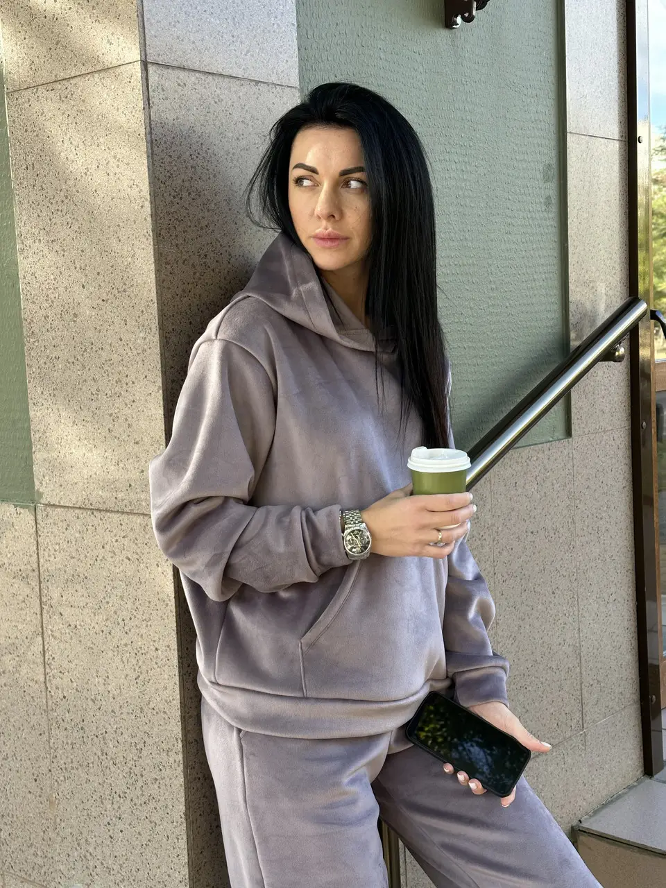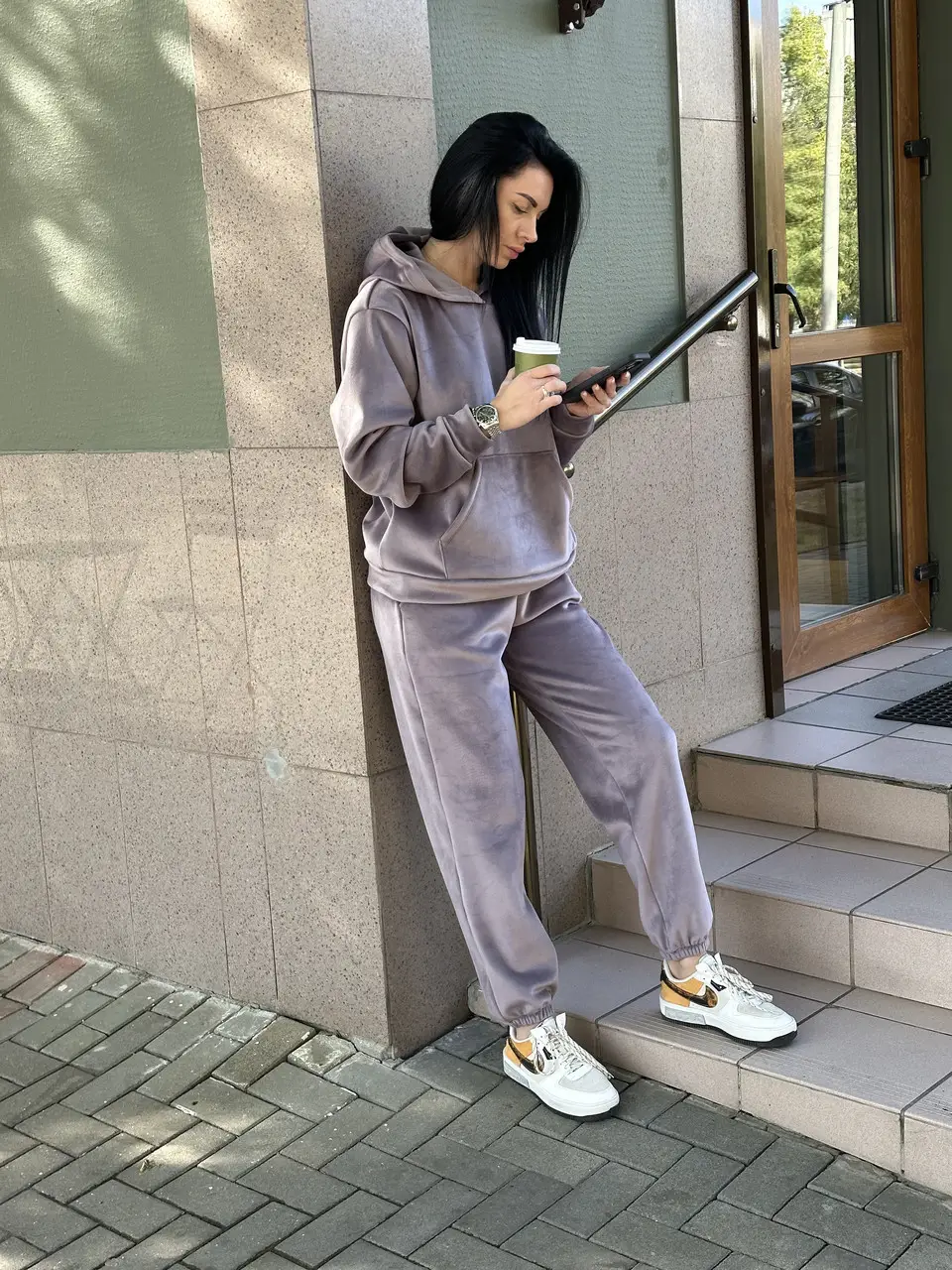 Оновіть свій гардероб із нашим стильним жіночим м’яким костюмом із велюру двостороннього. Цей набір включає затишний худі і зручні штани, створюючи ідеальний образ для дому або на вулиці.